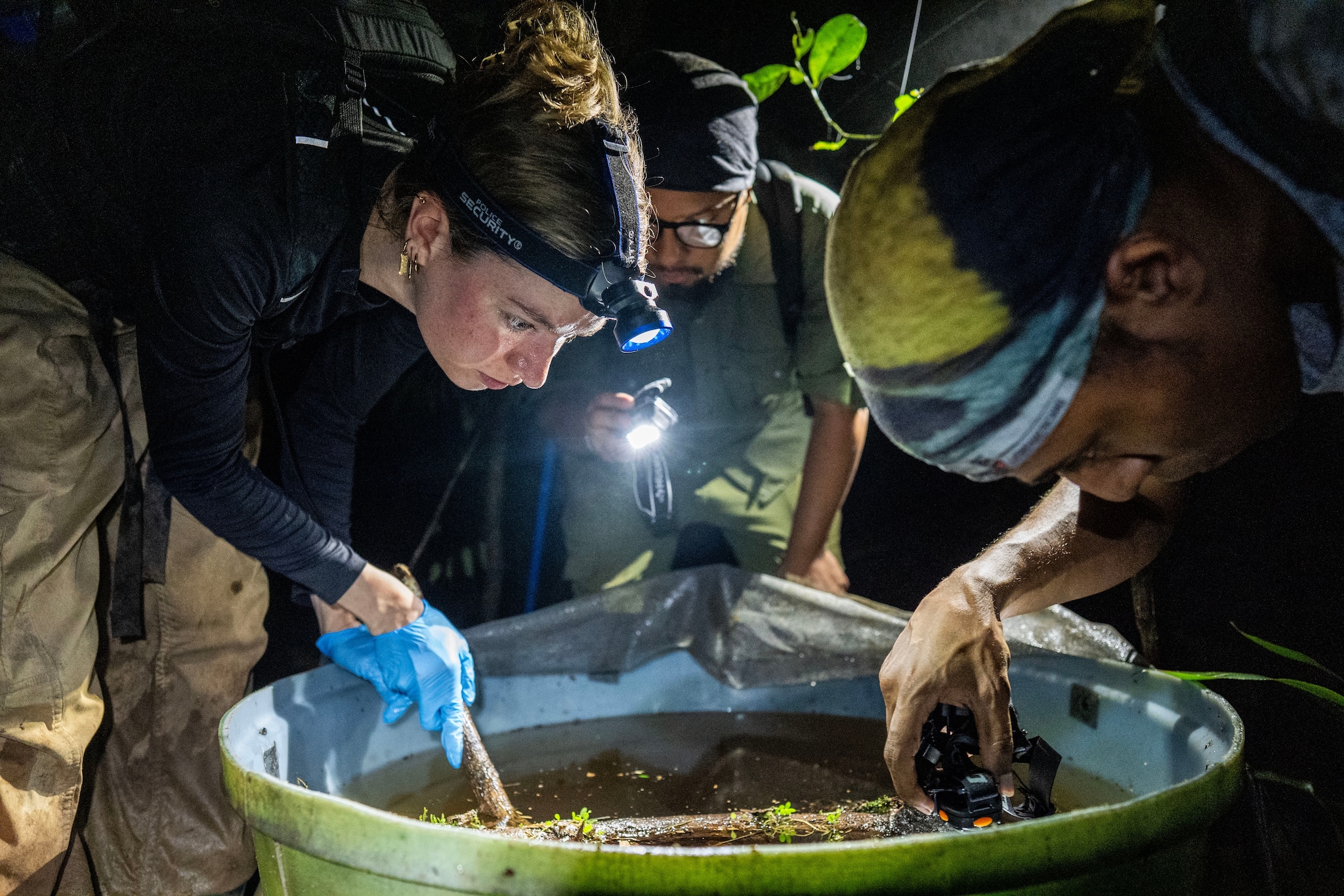 This year, the researchers also brought into captivity a population of Pratt’s rocket frogs that had disappeared in the national park but survived elsewhere, possibly because they had developed some immunity to the fungus. Gratwicke and his colleagues were relocating two dozen of those potentially resistant frogs to Altos de Campana. After two weeks, the researchers would unzip them from the tents, with the hope that the transplanted frogs might help repopulate the park.