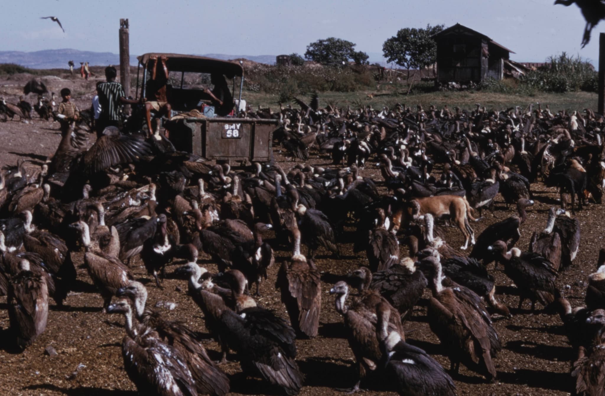 Vultures and humans have long collaborated on disposal of dead cattle. Workers removed the hides for leather, leaving the meat more accessible to birds. Vultures then cleaned the carcasses, leaving bones to be harvested by a second group of workers. Collectors sold the bones for use in fertilizer and animal feed.