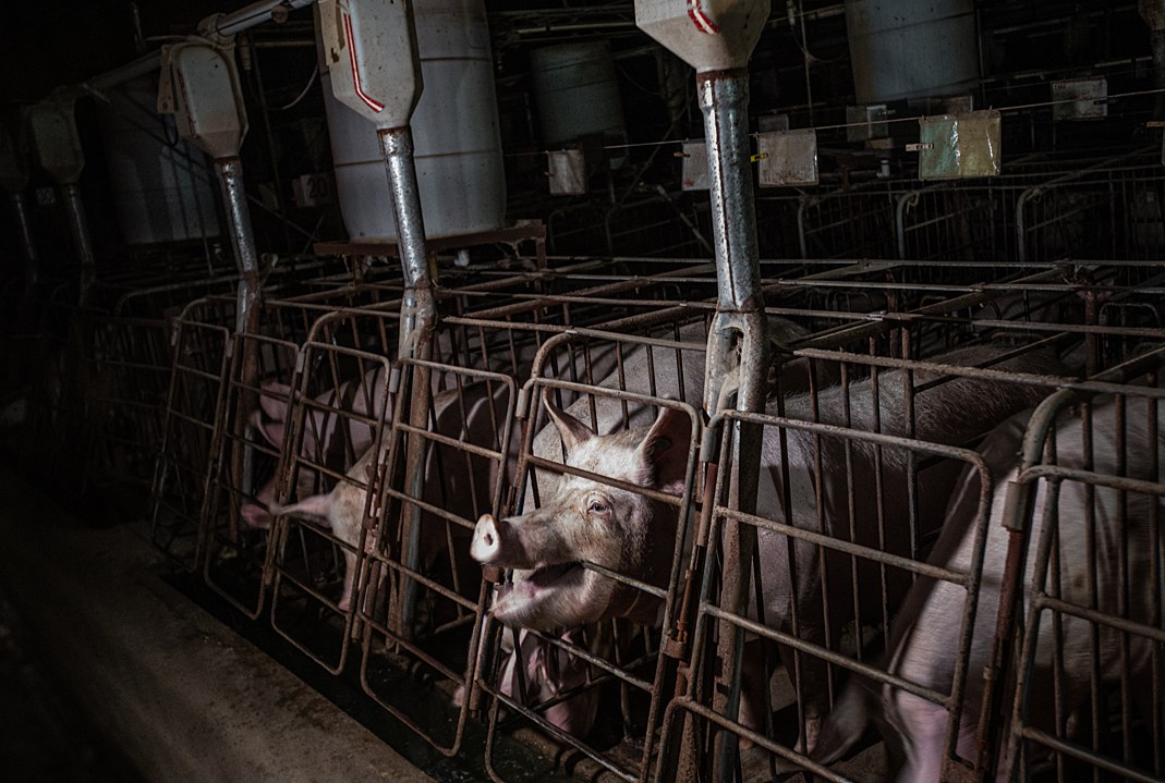 They’re bred to grow so big, so fast that many have difficulty walking, or have chronic joint and heart issues. Many species’ body parts are chopped off — hens’ beaks, turkey’s snoods, cows’ horns, piglets’ tails and testicles — without pain relief. Most hens and sows (female breeding pigs) spend their entire lives in tiny cages, unable to move around. The vast majority of farmed animals will never step foot on grass or breathe fresh air. Many will die prematurely from painful diseases.
