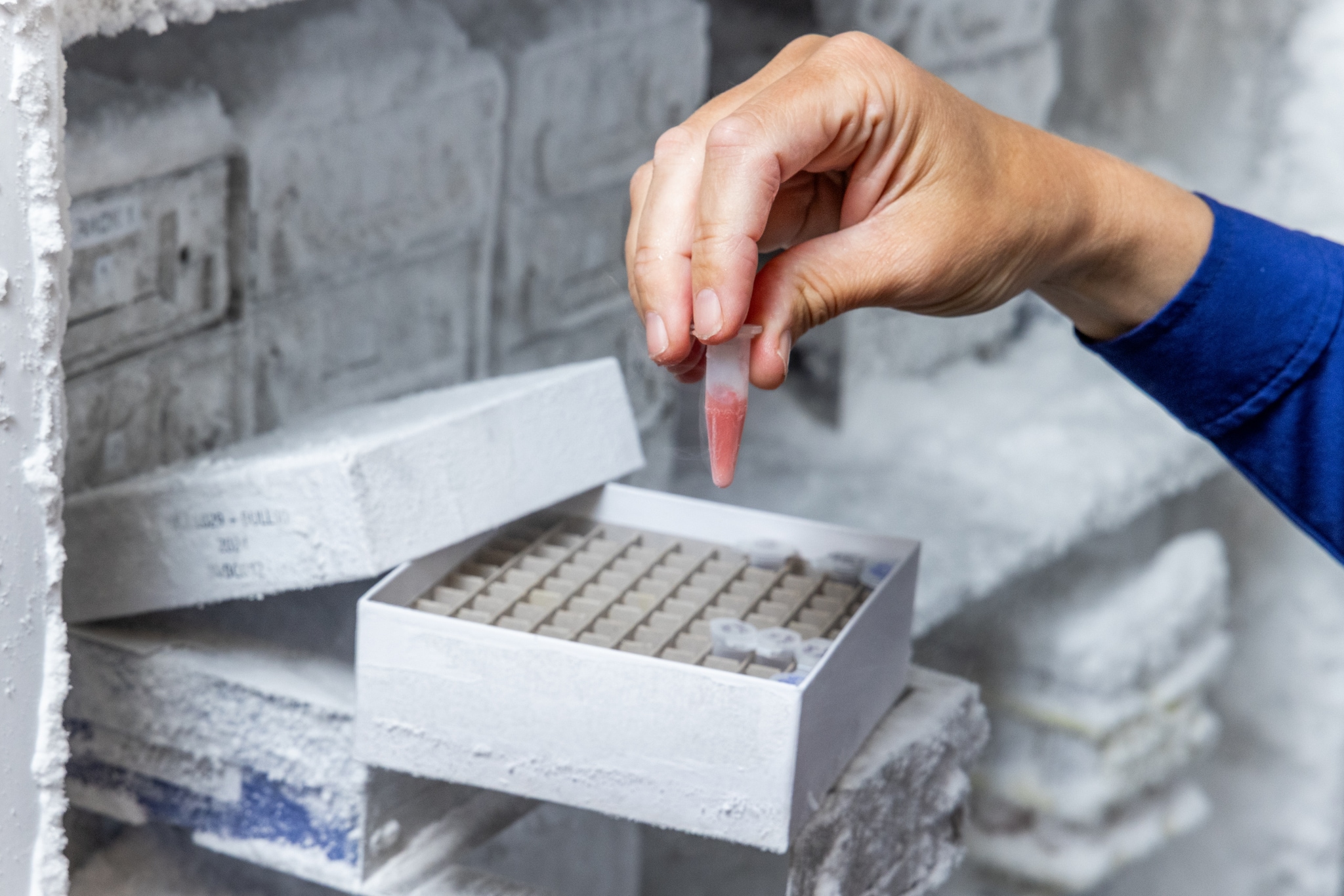 At the company’s lab in San Mateo, California, a large refrigerator holds an assortment of jars, bottles and plastic petri dishes containing mems.